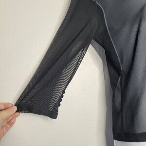 Vintage 90s y2k black semi sheer nylon mesh 3/4 sleeve button front cardigan L