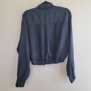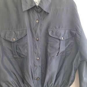 Vintage 90s 100% silk black bomber jacket raw hem long balloon sleeves elastic waistband collared with a button up front and pockets. In excellent pre owned condition with no signs of damage and a tiny bit of wear on the collar as shown in photos.