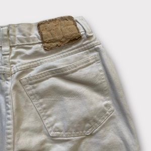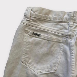 Vintage 90s/1990s Jordache white jeans, high rise, zipper and button on front, 5 pocket, belt loops, Jordache logo tab on back pocket