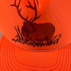 Vintage 90s/80s Deer Hunting Rope Adjustable Snap Back Hat Orange Faded Cap