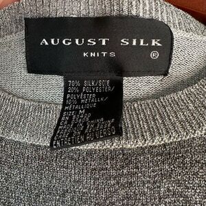 Vintage 90s August Silk Sparkly Silver Knit Crewneck Sweater Silk Blend Medium