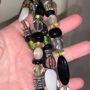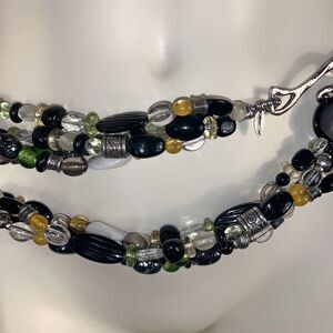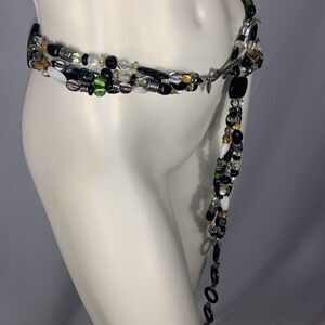 Mix of earthy glass and plastic beads triple stranded hip belt with adjustable link chain. Great vintage condition.