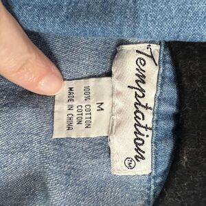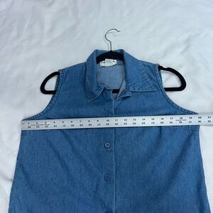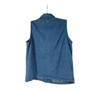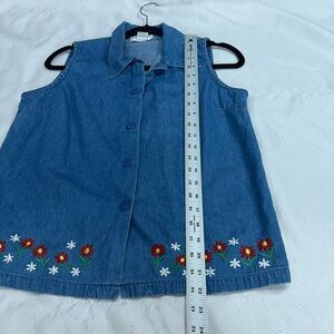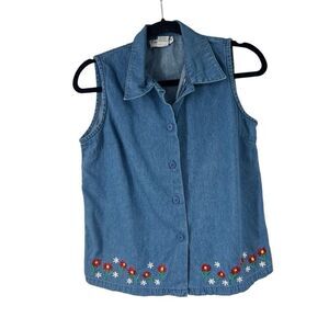 Vintage 90’s Denim Blue Floral Embroidered Sleeveless Button Up
