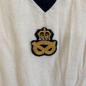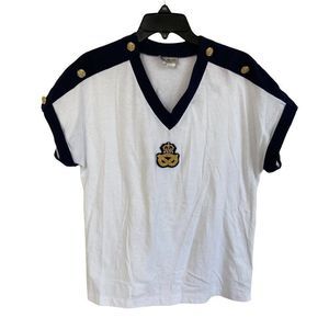 Vintage 90s French Navy T-Shirt Epaulets White Large