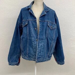 Vintage 90s Gap Denim Jacket Buffalo Plaid Lining. Please see photos for indications of use and measurements. Some paint marks on right side.