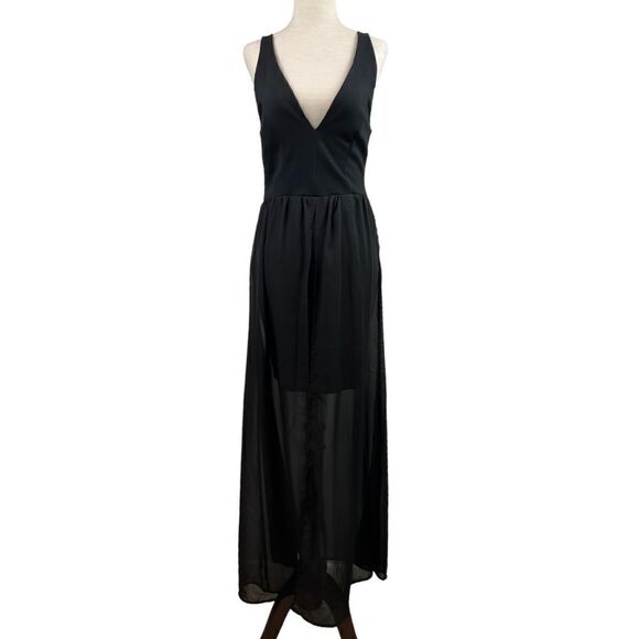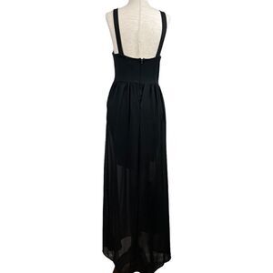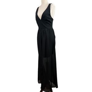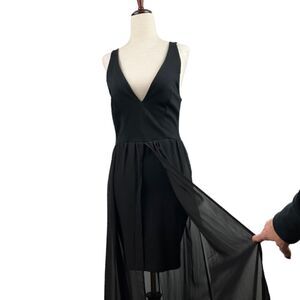 Vintage 90s J for Justify Black Deep V Mini Dress with Sheet Maxi Skirt Layered