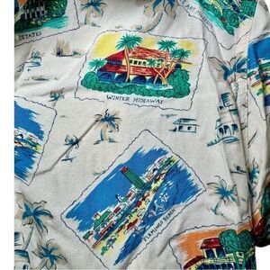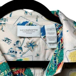 Vintage 90s Liz Claiborne Liz wear Jeans White Button Down Tropical Shirt Medium
