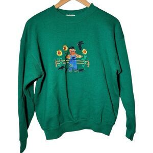 Vintage 90s Peanut Butter And Jelly Halloween Scarecrow Green Sweatshirt Medium