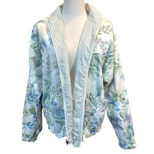 Vintage Gorgeous 90's Reversible Floral Sage Striped Cottagecore Coquette Feminine Pockets Zip Up Long Sleeve Jacket Large NEW Without Tags