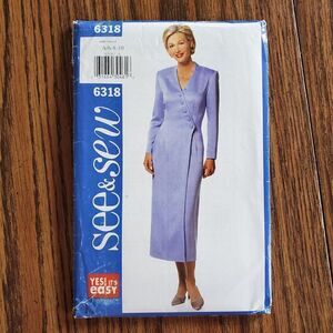 Vintage 90s See & Sew Pattern 6318 Uncut Sheath Mock Wrap Dress Sz 6 8 10