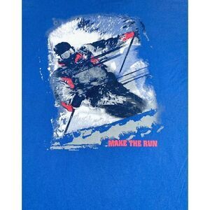 Vintage 90s Ski T-Shirt Blue XL Snowboard Make The Run Snow Single Stitch