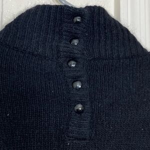 Gently worn. There is a little discoloration on top of the neck. There are fuzzies throughout due to wool and angora.