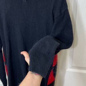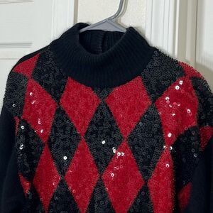 Vintage 90’s Sweater Black Red Argyle Sequin Wool Angora Silk Turtle Neck Size M