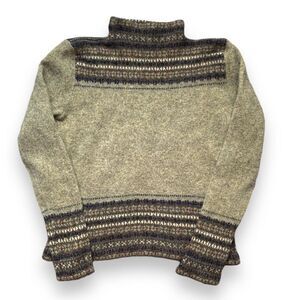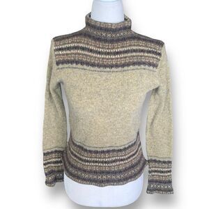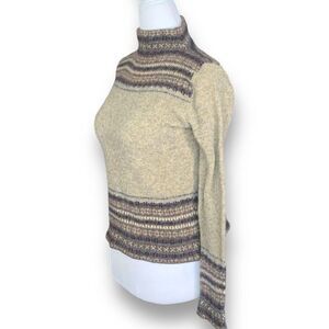 Vintage 90s Sweater Wool Cropped Neutral Knit Pullover Fair Isle Turtleneck XS