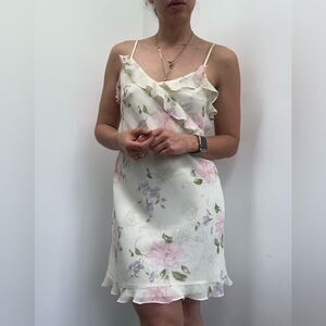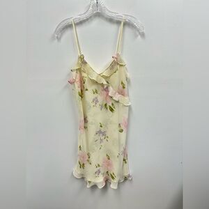 Vintage 90's Valerie Stevens Cream Floral Ruffle Spaghetti Strap Mini Dress S