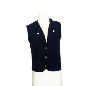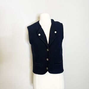Vintage 90s Womens 46 Alphorn Trachtenmode Wool Coin Button Vest Jacket Black