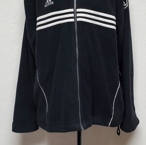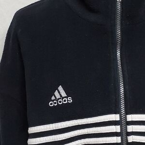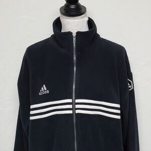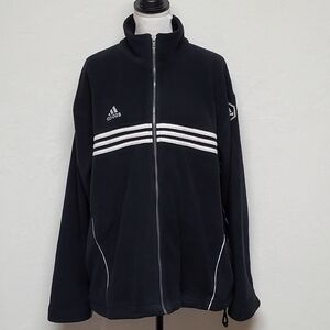 Vintage 90s/Y2K Adidas Black Fleece Three Stripe Logo Full-zip Soccer Jacket XL
