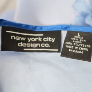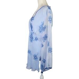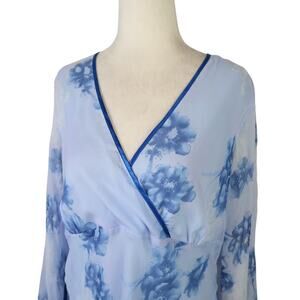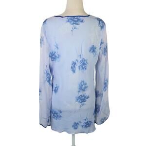 Vintage 90s/Y2K Blue Floral Silk Babydoll Tunic Top Flare Sleeves L