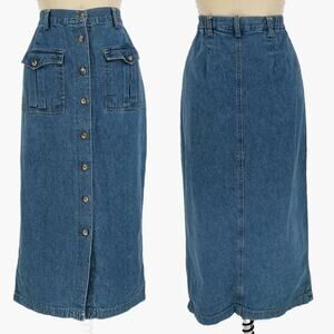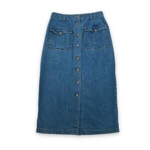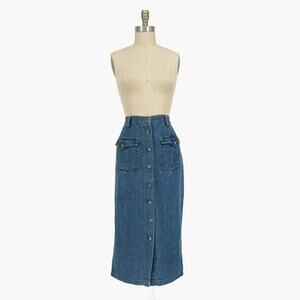 Vintage 90s/Y2K Button Front Denim Midi Column Pencil Skirt size Medium