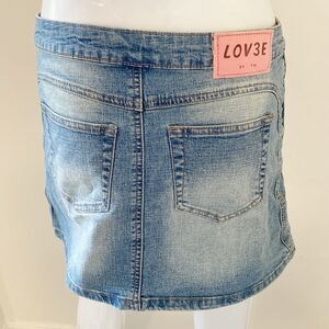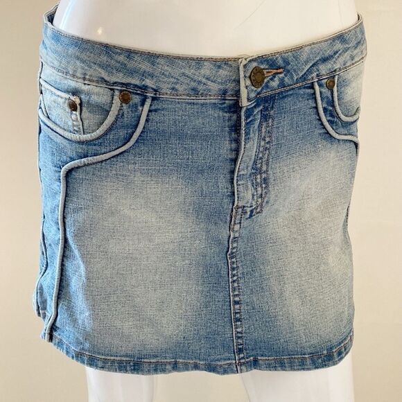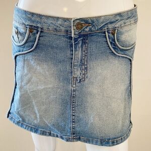 Vintage 90s Y2K Lov3e by TM Denim Low Rise Jean Mini Skirt w Piping Details