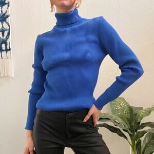 Vintage 90s/Y2K Ralph Lauren Blue Ribbed Turtleneck Sweater