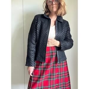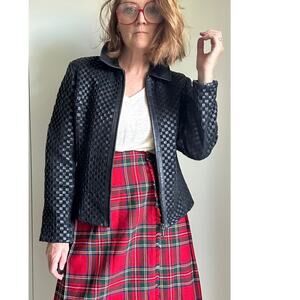Vintage Y2K Woven Black Leather Jacket Size Medium Classic Fit Fall Fashion Millennial Style