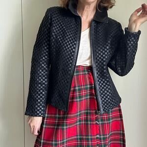 Vintage 90sY2K Woven Black Leather Jacket Size Medium Classic Heritage Style