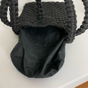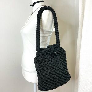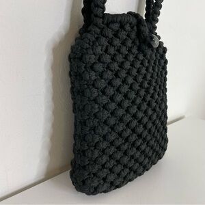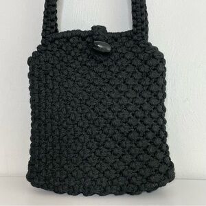 Vintage 90s/Y2K black macramé crochet purse with wooden bead closure