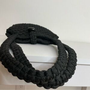 Vintage 90s/Y2K black macramé crochet purse with wooden bead closure