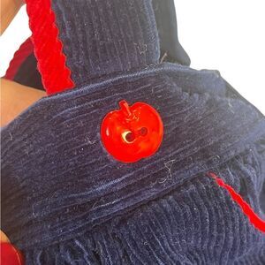 So cute! Corduroy skirt with suspenders, apple buttons. Button front top with apples, rulers, school