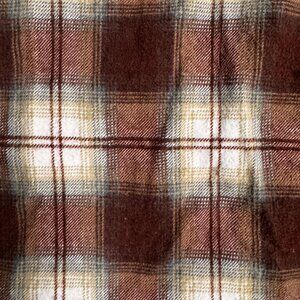 This vintage flannel shirt from the 911 Collection offers both style and comfort. Its classic plaid pattern in warm brown and beige tones complements its durable cotton-polyester blend, making it a versatile addition to your wardrobe. Ideal for layering, it adds a rustic touch to casual outfits.