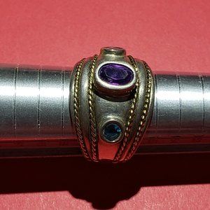 Vintage 925 14K Gold Over Purple Amethyst & Aquamarine Ring