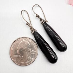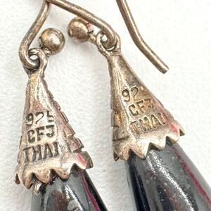 Vintage 925 CFJ THAI Sterling Silver Bali Style Black Dangle Earrings Ethnic