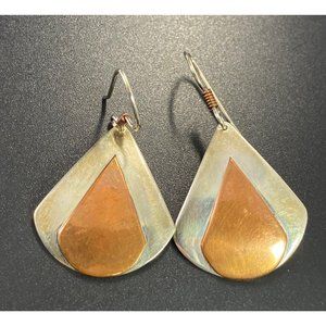 Vintage 925 Copper Dangle Earrings Sterling Teardrop Hook Fine