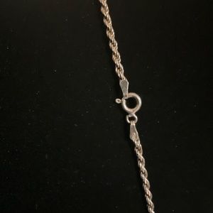This is a beautiful chain with pendant. Please look at pictures closely. There is a small black crystal missing on the top upper hand corner and one emerald has a crack. I do do clean vintage or antique jewelry due to customer’s preference. This is a stunning piece and photos do no justice. The chain is approximately 8 1/2 inches long With pendant. The is pendant alone is 1 1/8 L and 1 q/4 W. Rope chain is 2 mm wide.