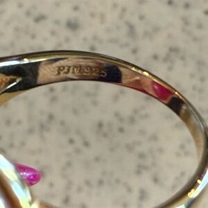Elegant vintage 925 sterling silver ring with a rich gold-tone finish and a dreamy white moonstone cabochon.