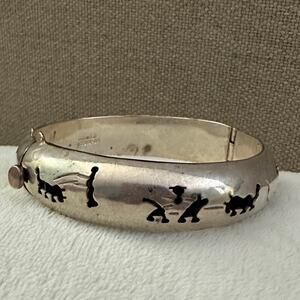 Vintage 925 Mexico Sterling Silver Shadowbox Storyteller Clamper Bracelet