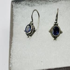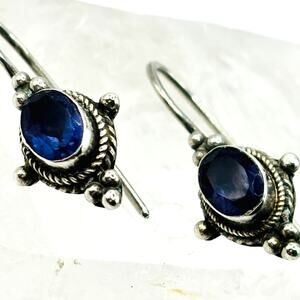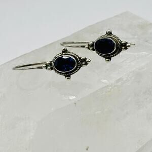 1990's Vintage Dainty Dangle 925 Marked Silver Earrings with that classy Art Nouveau style and Faceted Amythist Setting.