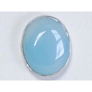 Stunning large oval statement ring featuring natural blue chalcedony gemstone with soft glowing translucent appearance. Waxy luster creates beautiful ethereal quality. Durable gemstone (Mohs 7 hardness) perfect for everyday wear. Substantial 7.5g weight showcases quality craftsmanship. Perfect for chalcedony collectors, blue gemstone lovers, statement ring enthusiasts, or anyone who appreciates unique translucent stones. Great preowned condition with very light wear.