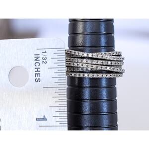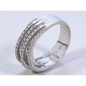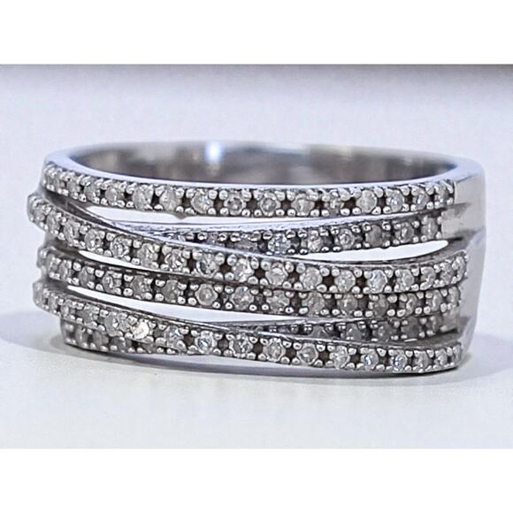 Stunning crossover design ring featuring multiple rows of sparkling cubic zirconia crystals. Marked "925" sterling silver with elegant intersecting band style. Beautiful sparkle and dimension from layered CZ rows. Perfect for CZ jewelry lovers, crossover ring collectors, cocktail rings, or anyone who loves sparkly statement rings. Great preowned condition with very light wear. See photos for ring size.