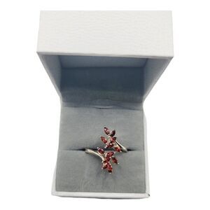 Vintage 925 Silver Garnet Branch Leaves Design 12 Stone Ring Size 9 Adjustable.