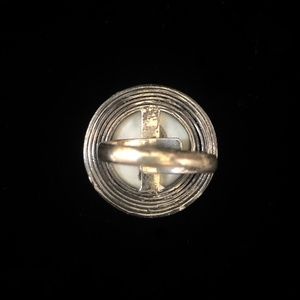 Gorgeous modernist statement disk ring with smooth mother of pearl!