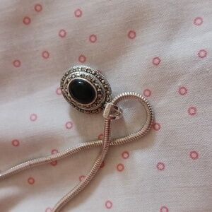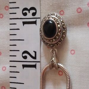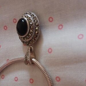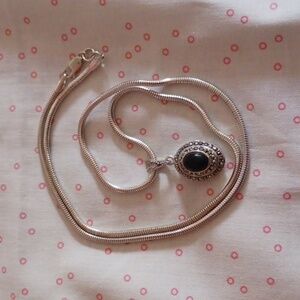 Vintage 925 Silver Black Onyx Stone Crystal Pendant Necklace
