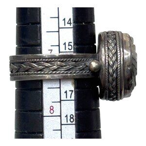 This vintage ring features an elegant rose design with a captivating mother of pearl cabochon set in 925 silver. Its intricate craftsmanship makes it a timeless accessory that complements both casual and formal attire. A versatile piece that adds a touch of vintage charm and sophistication to any jewelry collection.