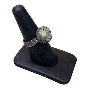 Vintage 925 Silver Rose Ring Carved Mother Of Pearl Cabochon Size 7 Art Deco
