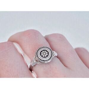 Vintage 925 Silver Wire Wrapped Flower Ring Oxidized Boho Artisan Design