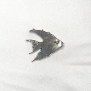 Vintage 925 Stamped Sterling Silver Green & Black Mexican Angel Fish Brooch