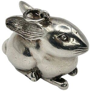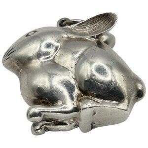 Vintage 925 Sterling Silver 3D Puffy Bunny Rabbit Necklace Pendant