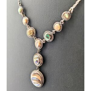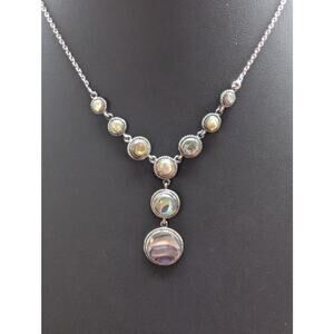 Vintage 925 Sterling Silver Abalone 'Y' Drop Chain Necklace. Measures 16" around the neck. Pre-owned, this necklace is in excellent vintage condition.