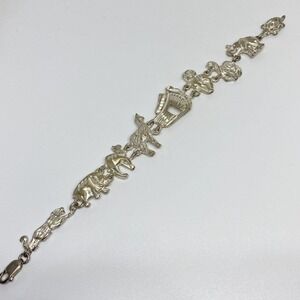 Vintage 925 Sterling Silver Animal Link Bracelet 7.5"